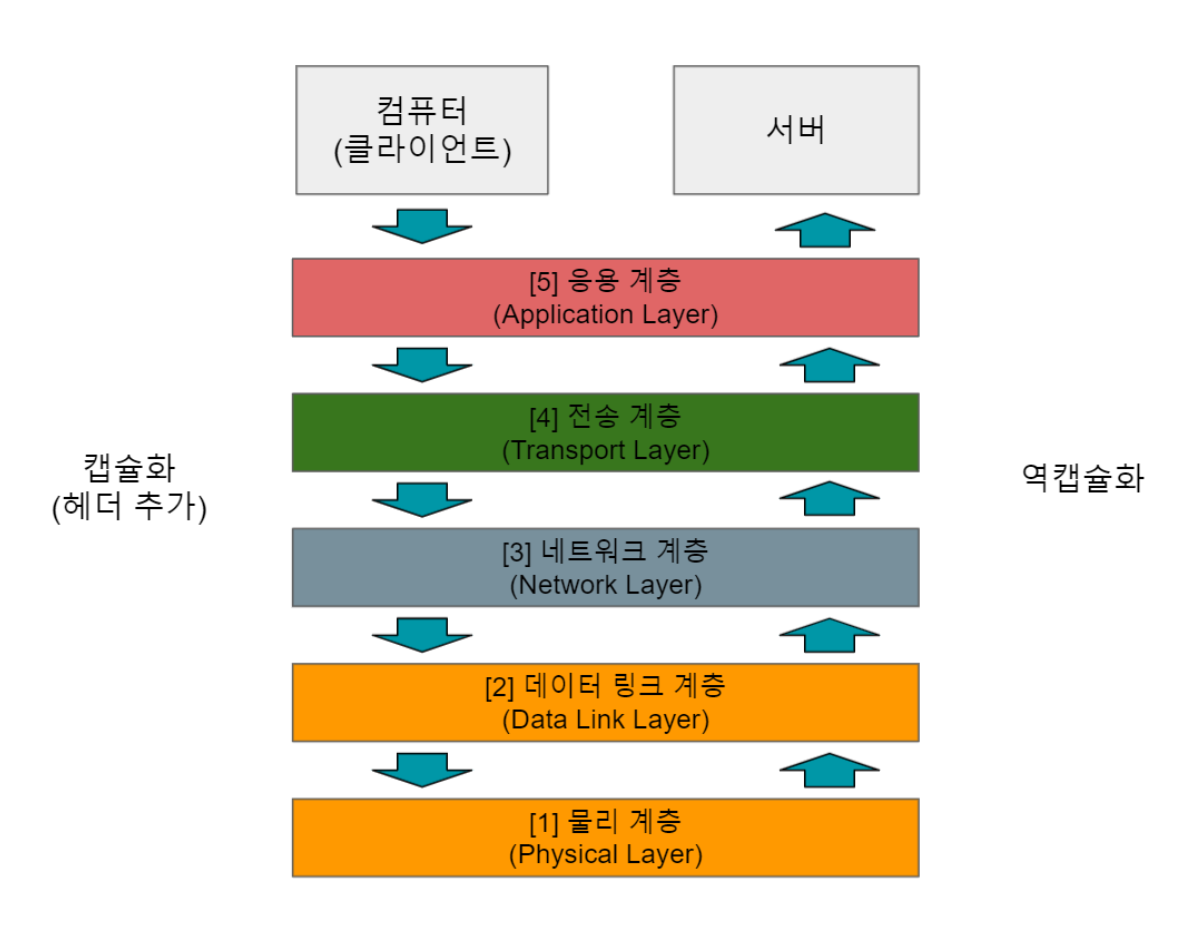 - 국제표준화기구(ISO)에서 컴퓨터 네트워크 프로토콜 디자인과 통신 계층을 구성하여 개발한 네트워크 모델